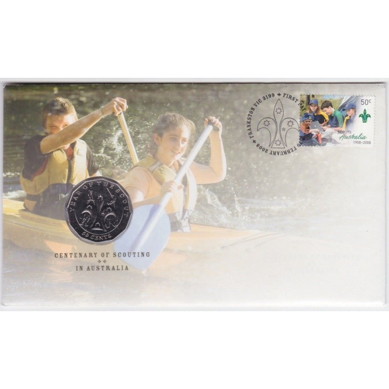 2008 PNC 50c Centenary Of Scouts Australia Stamp and Coin Cover
